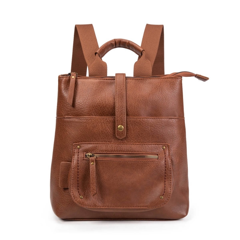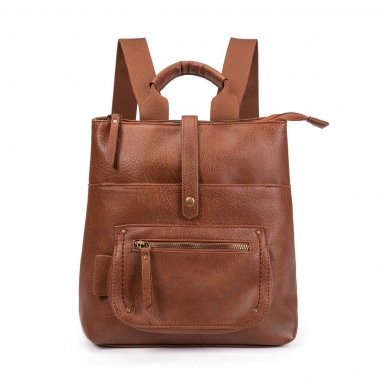 Mochila en piel sintética de color cuero , con bolsillo delantero.