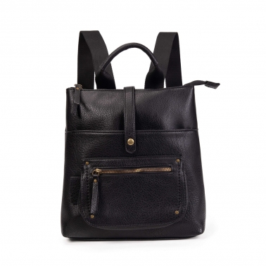 Mochila en piel sintética de color negro , con bolsillo delantero.