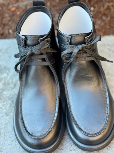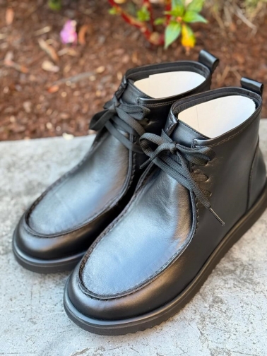 Elegantes y versátiles, estos botines de piel negra combinan la comodidad con un diseño atemporal. Su acabado liso y brillante realza la calidad del material, mientras que las costuras visibles en la parte superior aportan un toque artesanal. Con suela ligera y antideslizante, son ideales tanto para un look casual como para ocasiones más formales. El sistema de cordones asegura un ajuste perfecto y cómodo durante todo el día.