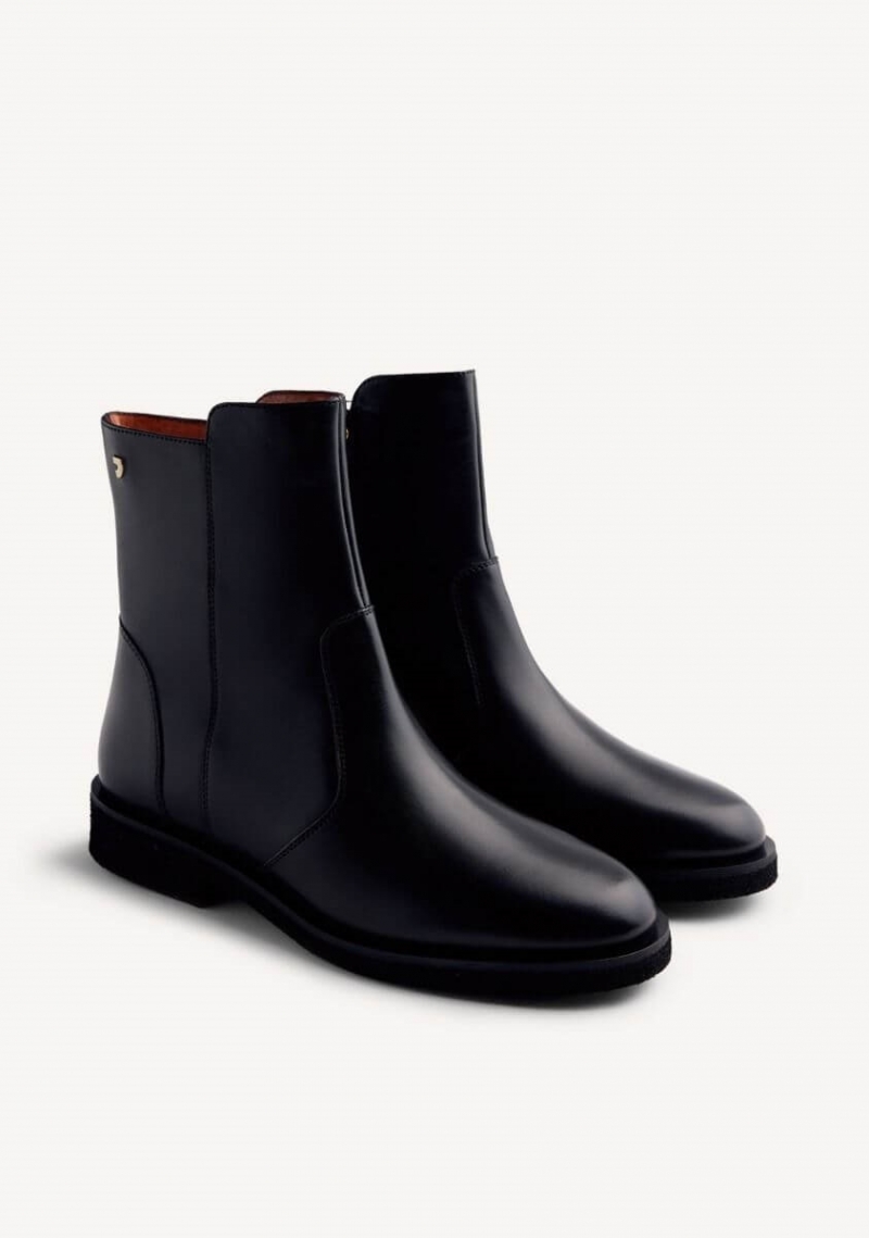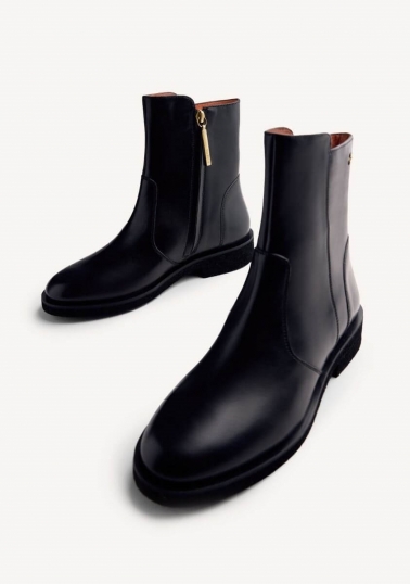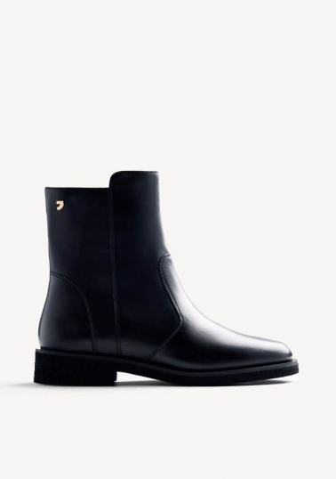 Botines de piel con punta redonda. Cuentan con plantilla acolchada y cremallera en el lateral interno de la caña. Este modelo destaca por su ligereza. Altura caña: 16 cm. Seguimos la guía estándar de anchos de caña, ajustando la medida según la talla.