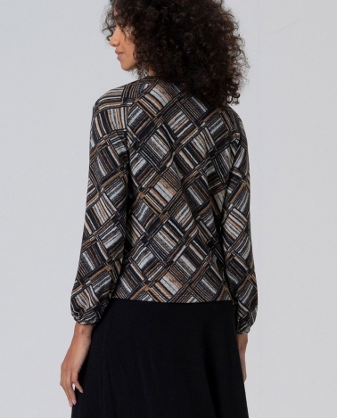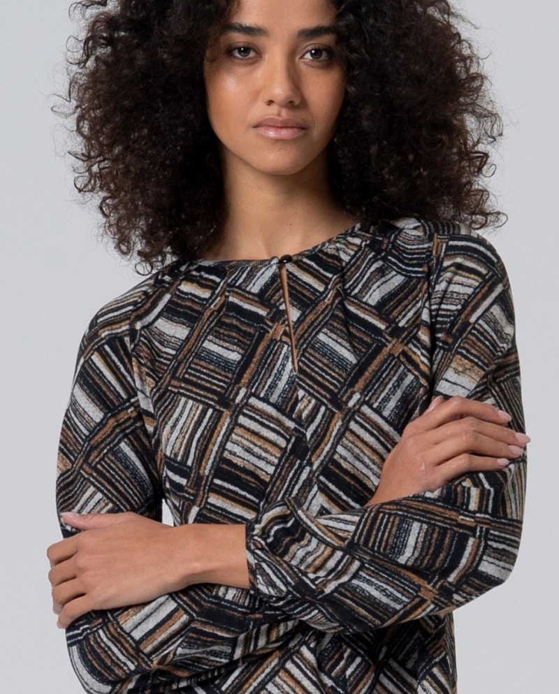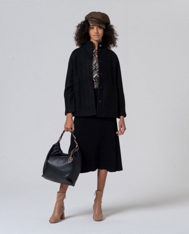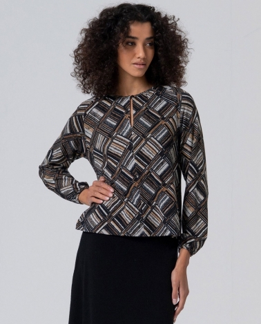 Camiseta con abertura de lagrima en escote , color negro . Manga larga .