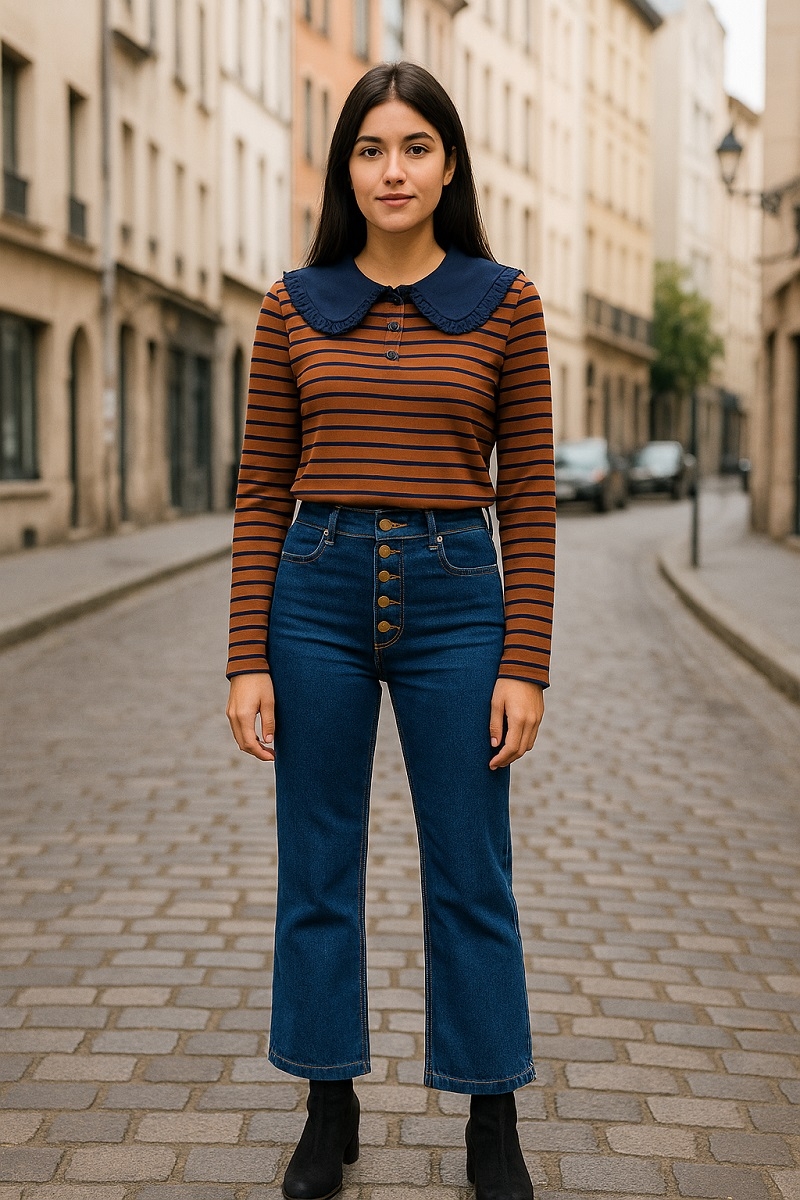 polo cuello babero rayas choco