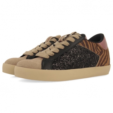 Zapatillas con cuña interior con estampado animal print y detalle lateral en glitter negro . Composición: EMPEINE: VACUNO 56% BRILLO 34% PU 10% FORRO: POLIÉSTER 100% SUELA: CAUCHO 100% PLANTILLA: POLIÉSTER 100%