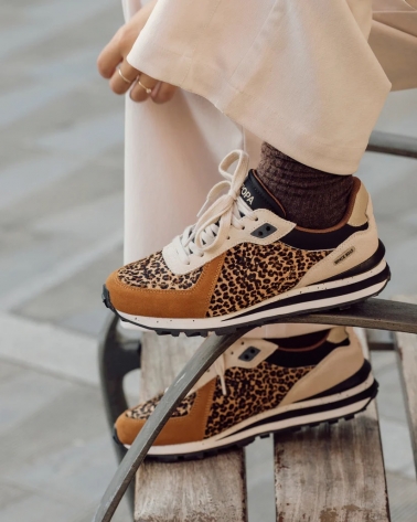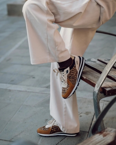 Zapatilla Blake en contraste de tejidos serraje y napa estampado animal