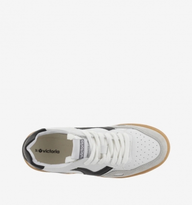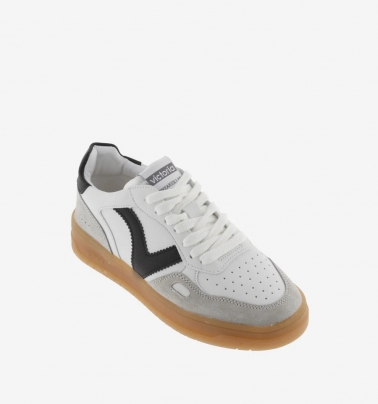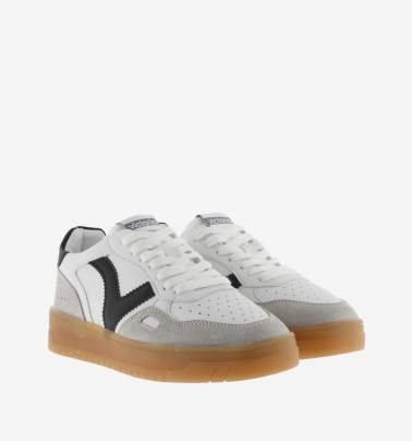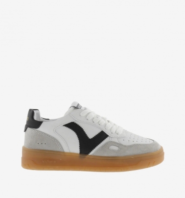 Zapatillas deportivas unisex fabricadas en material efecto piel y piezas de serraje. V del lateral en colores negro y blanco, a juego con la pieza trasera con el logotipo de la marca. Cierre mediante cordones al tono. Detalle en forma de ventana en el lateral. Suela en color caramelo de 3,5 cm. Incluyen una plantilla extraíble acolchada para mayor confort. Exterior: micropana, piel y textil. Interior: textil y sintético. Interior: con plantilla extraíble. Suela: T.P.R. Altura: 3 cm No lavar: Uno o varios de los materiales que componen estas zapatillas no son lavables, por lo que recomendamos no lavar este modelo.