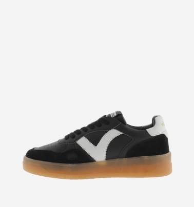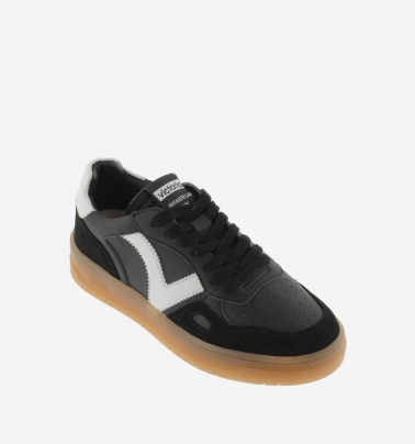 Zapatillas deportivas unisex fabricadas en material efecto piel y piezas de serraje. V del lateral en colores negro y blanco, a juego con la pieza trasera con el logotipo de la marca. Cierre mediante cordones al tono. Detalle en forma de ventana en el lateral. Suela en color caramelo de 3,5 cm. Incluyen una plantilla extraíble acolchada para mayor confort. Exterior: micropana, piel y textil. Interior: textil y sintético. Interior: con plantilla extraíble. Suela: T.P.R. Altura: 3 cm No lavar: Uno o varios de los materiales que componen estas zapatillas no son lavables, por lo que recomendamos no lavar este modelo.