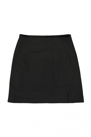Falda corta negra con abertura , cierre de cremallera . Falda básica de tu fondo de armario !! Material : 67% Polyester, 27% Viscose, 6% Elasthan