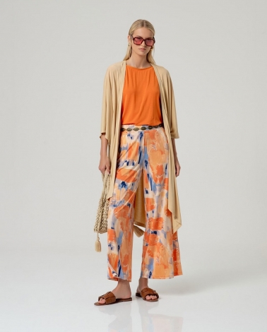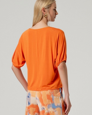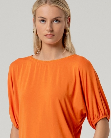 Camiseta de manga corta, manga abullonada de color naranja .