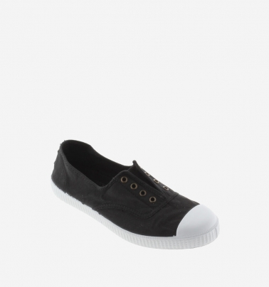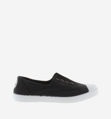 Zapatillas de lona sin cordón para mujer fabricadas en una combinación única de algodón reciclado DREC® (Dyeable Recycled Eco Cotton) y algodón ecológico cultivado, hilado y tejido en España.