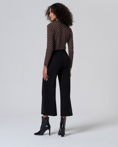 Pantalón amplio con botones en cintura Negro . Composición: 56%Rayón 37%Nylon 7%Spandex