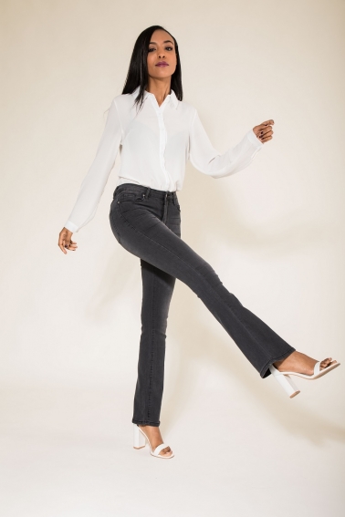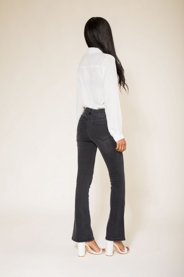 Pantalón vaquero acampanado con elastan y cintura alta .