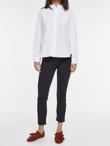 Pantalón elástico en tejido de punto , de corte recto , cierre con botón y cremallera