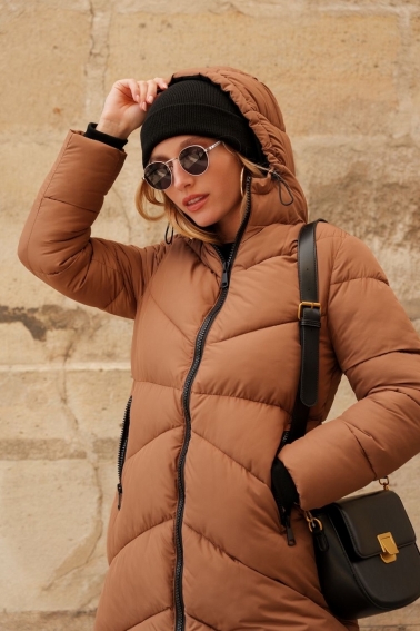 Abrigo acolchado diseño en espiga camel