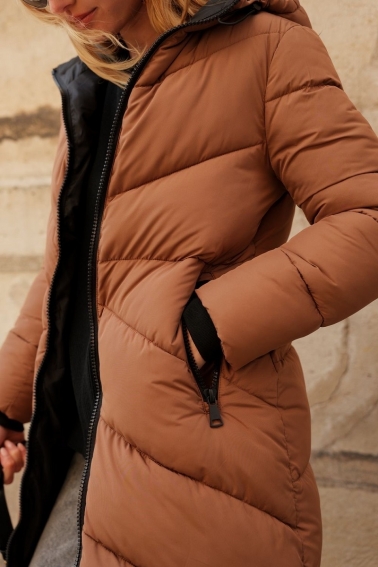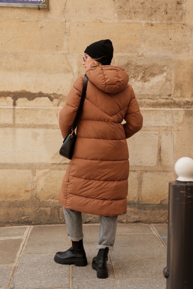 Chaqueta larga acolchada con diseño de espiga en color teja