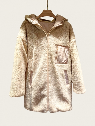 Abrigo acolchado reversible beige , con borreguito , una prenda muy versatil !!