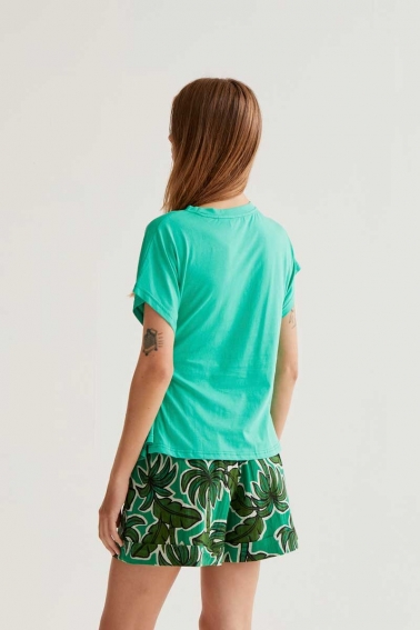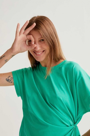 camiseta 100% algodón verde con nudo lateral