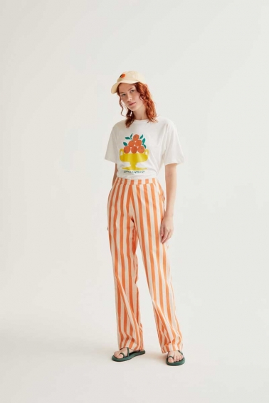 Camiseta de tejido 100% algodón con estampado compañia fantástica. Cuello redondo y manga corta. Hombro ligeramente caído. La modelo mide 175 cm y lleva la talla S.