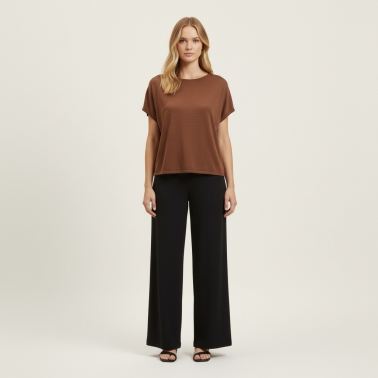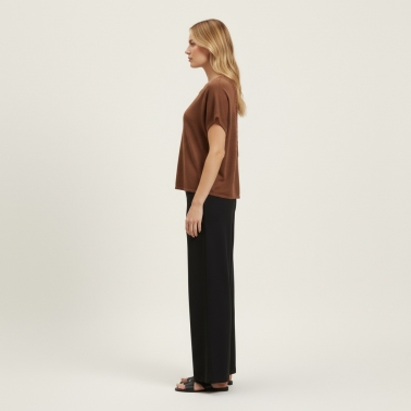 Camiseta en viscosa manga caida espalda de crochet de color marrón