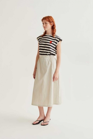 Camiseta manga corta a rayas negras con tulipán bordado .