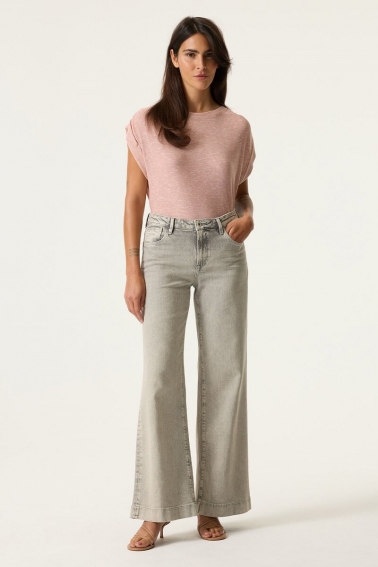 Camiseta en viscosa con hombro fruncido y hilo de lurex de color rosa
