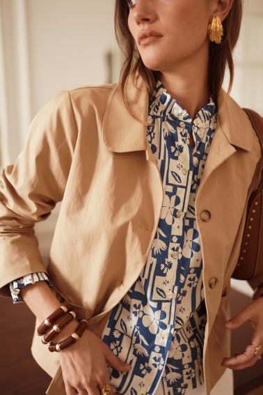 Cazadora de mujer en tono beige, perfecta para completar looks de entretiempo con un toque sofisticado. Su diseño ligero y de líneas limpias la convierte en una prenda versátil, ideal tanto para conjuntos informales como para outfits más arreglados. El cierre frontal y su corte favorecedor aportan comodidad y estilo a partes iguales.