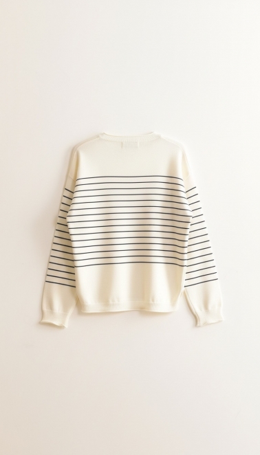 Jersey de punto en viscosa con rayas y estampado delantero de color azul