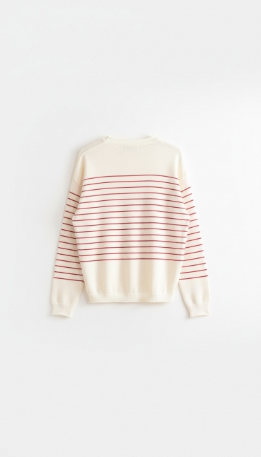 Jersey de punto en viscosa con rayas y estampado delantero de color rojo .
