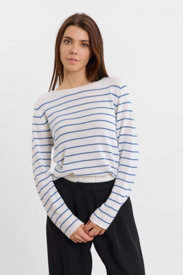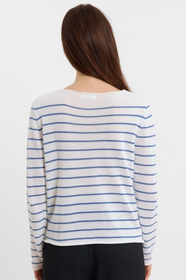Jersey de rayas marineras , con cuello barco , en tejido ligero .