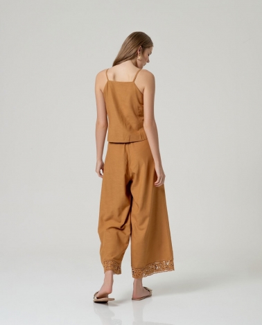 Pantalon pata ancha con bordado en bajo Camel