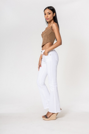 Pantalón de loneta bootcut blanco con bajo desflecado