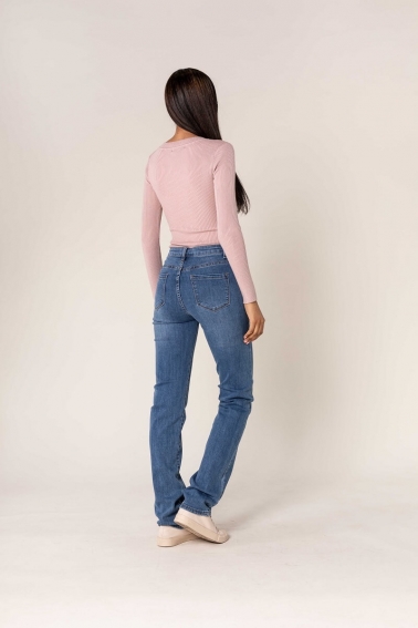 El modelo mide 169 cm y lleva una talla francesa S/36.
