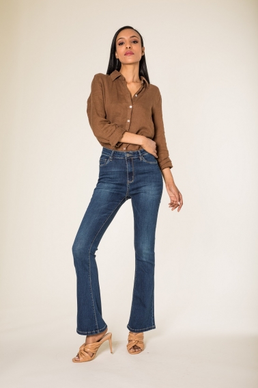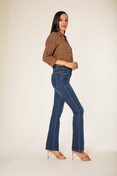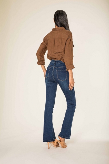 Pantalón vaquero acampanado con elastan y cintura alta .