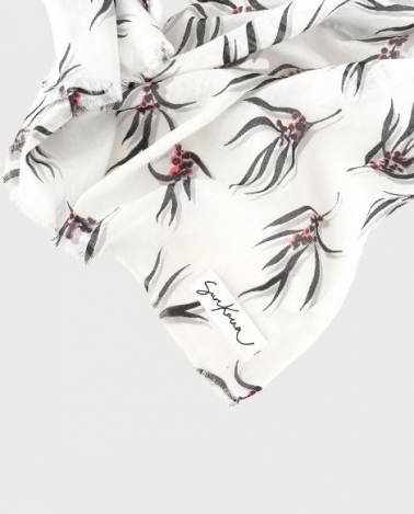 Pañuelo rectangular estampado con flecos cortos blanco .