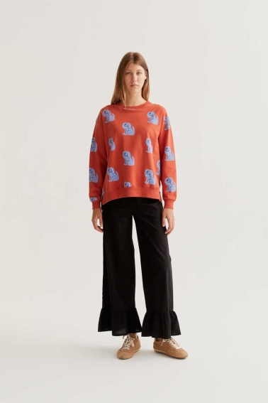 Sudadera con tejido estampado de perros .Cuello redondo y manga larga. Hombro ligeramente caído. Detalle acabado en rib.