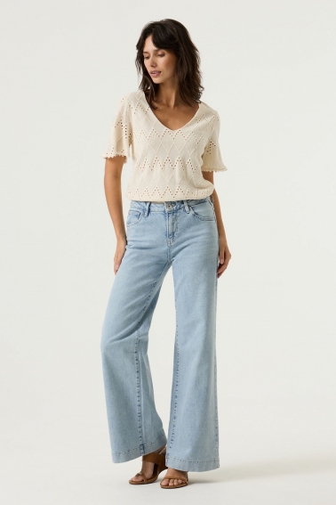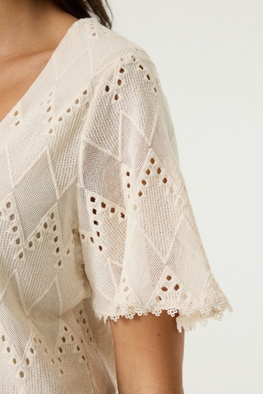 Top de algodón con detalle calado crudo