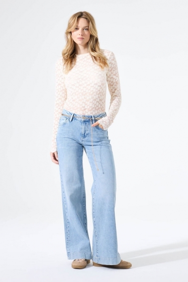Camiseta de manga larga en tejido de encaje , con aire romántico que elevará todos tus looks .