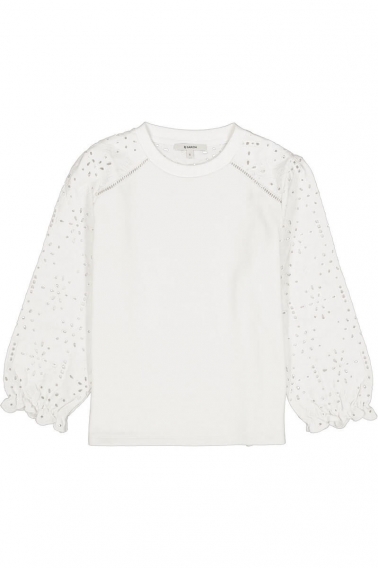 Precioso top de manga troquelada , con cuello redondo , en tejido de algodón .