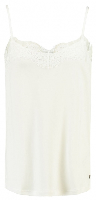 Top con ribete de encaje. Este top es un básico elegante con un toque moderno. Tiene un corte regular y está confeccionado en 70 % modal y 30 % poliéster. El modal tiene la lujosa apariencia de la seda y es transpirable.