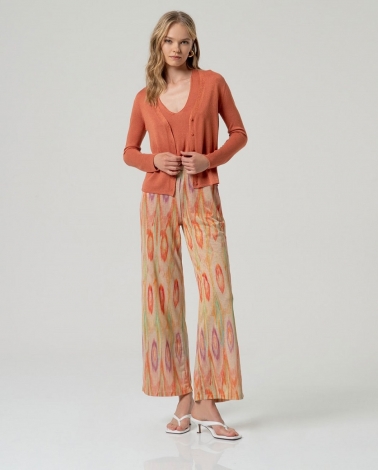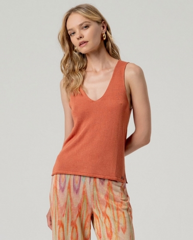 Top de tirantes anchos , en tejido de punto escote pico . Con brillo de lurex .