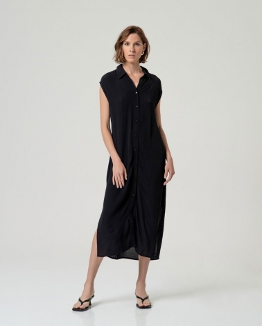Vestido largo camisero, sin mangas negro.