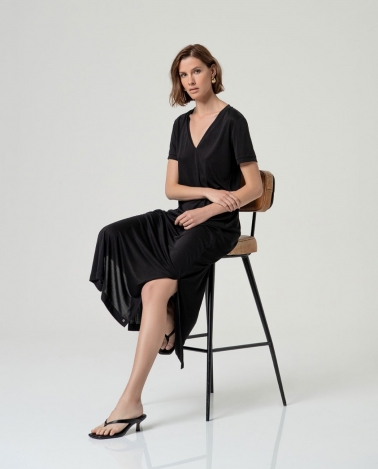 Vestido largo con aberturas.escote pico Negro
