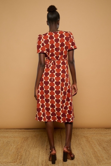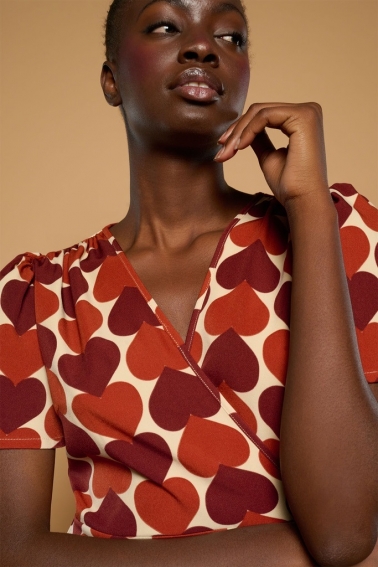 Vestido largo de escote cruzado estampado de corazones rojo