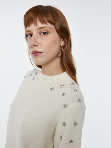 Jersey cuello tortuga con fantasia de predería .Talla unica . COMPOSICiÓN: 58% poliester 30% acrilico 10% lana 2% spandex.