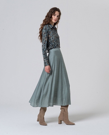 Camisa ECOVERO elástica estampada , con manga larga y cuello camisero . Composición : 96%ECO Viscosa 4%Elastano