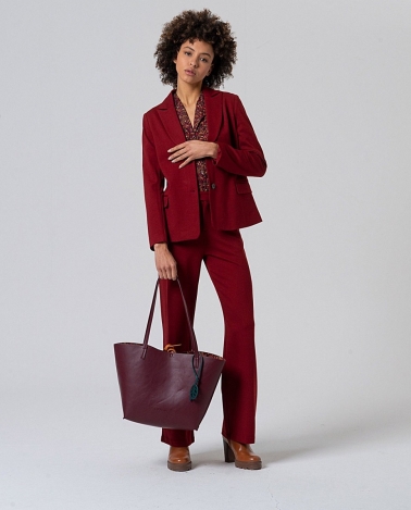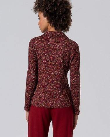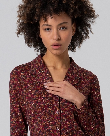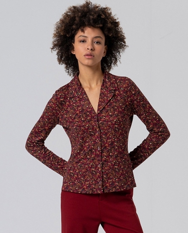 Camisa estampada de flores , en tejido de punto elástico , con cuello smoking y manga larga .