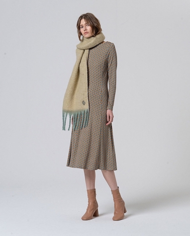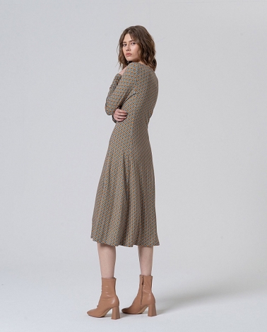 Vestido largo estampado en viscosa , con manga larga y cuello redondo , tejido de punto .